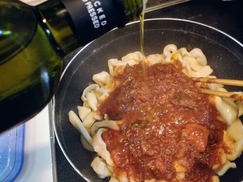 ほうとうが生パスタ風に変身 ほうとう。コスパ最強の中力粉で手打ちしたほうとう麺を冷凍し、凍ったまま塩茹でしたものを残り物ビーフシチュー+オリーブオイルで生パスタ風にしてみました。安くて美味しくて冷凍ストックできる、凍ったまま使える、塩入って…