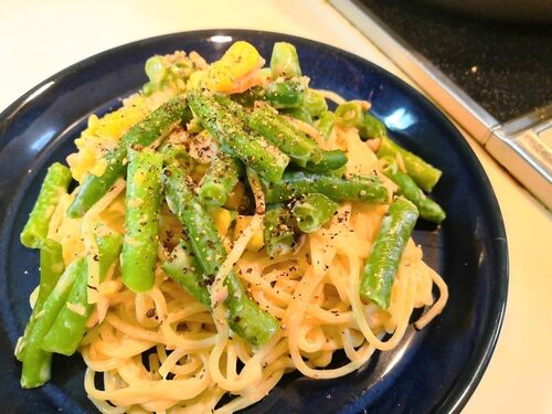 冷凍水漬けパスタを鮭フレークと牛乳でいきなりフライパンで煮込むパスタ クリームパスタ。寒いシーズンは特に食べたくなる一品。この日は妻が忘年会でワンオペだったのでフライパン1つでいきなり作れるズボラなクリームパスタにしました。水漬け冷凍パスタ…