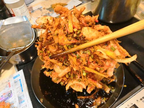 おからパウダー入りでヘルシーな紅生姜入りかき揚げは飲み会人気メニュー。 人参と紅生姜が甘さと塩気の良いバランス。 カリカリになるまでしっかり揚げる。 衣はおからパウダーと片栗粉だけでクリスピーにヘルシーに。 揚げ油はごま油を多めに入れると香ば…