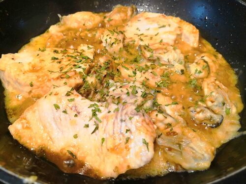 サメと冷凍牡蠣をグラスフェッドバターとにんにく醤油で濃厚ムニエル。 サメと冷凍牡蠣をにんにくたっぷり、バター醤油がご飯にもパンにも合う一品に。 冷凍牡蠣は流水解凍ですぐに調理OK。 バターはグラスフェッドバターを使用。 グラスフェッドバター、健…
