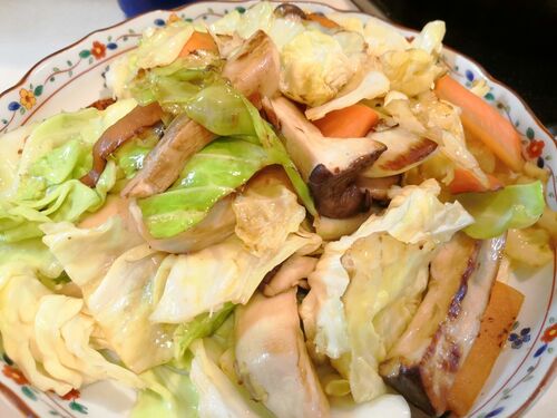 手でちぎったキャベツ、手で割いたエリンギが食べごたえばっちりな野菜炒め。塩味ですがオリーブオイルの風味とコクがあって野菜の甘みが引き出て美味しいです。 エリンギはしっかり焼いて、キャベツは半生でバリバリ食感がおすすめ。 それでは、50kg痩せた…