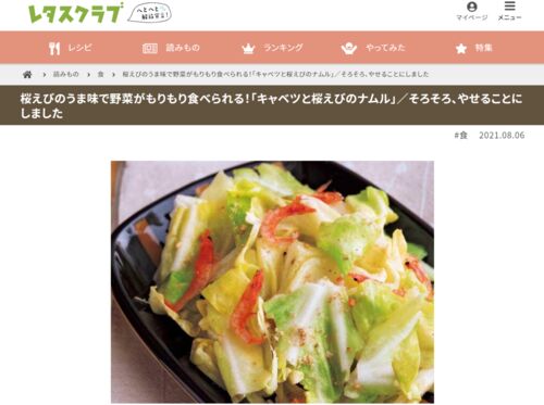 【レタスクラブに掲載】桜えびのうま味で野菜がもりもり食べられる!「キャベツと桜えびのナムル」の作り方